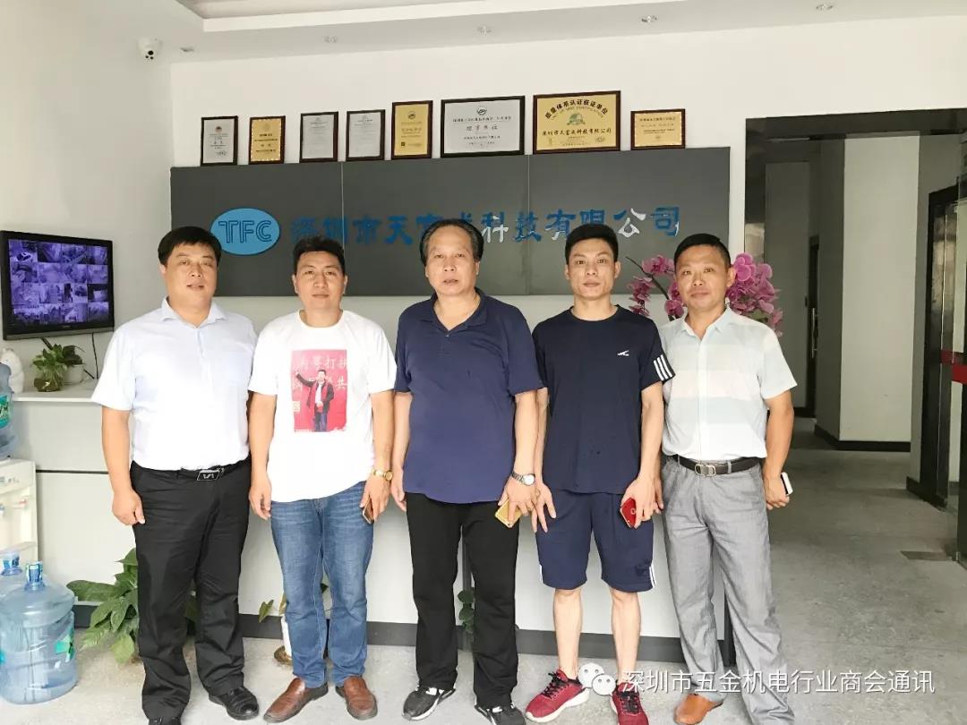 5月22日下午,深圳市森永发实业有限公司刘总、深圳恒利威科技有限公司吴总、深圳新华隆机电设备有限公司徐总及深圳市五金机电行业商会秘书处韩秘书一行四人走访了包副会长的公司——深圳市天富成科技有限公司,受到包副会长的热烈欢迎和热情接待。